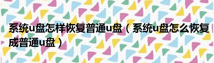 系统u盘怎样恢复普通u盘(系统u盘怎么恢复成普通u盘)