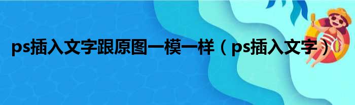 大家好,小东方来为大家解答以上的问题。ps插入文字跟原图一模一样,ps插入文字这个很多人还不知道,现在让我们一起来看看吧!