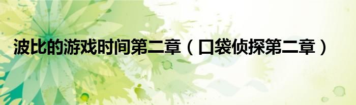 大家好,小爱来为大家解答以上问题。波比的游戏时间第二章,口袋侦探第二章很多人还不知道,现在让我们一起来看看吧!