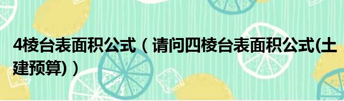 4棱台表面积公式(请问四棱台表面积公式(土建预算))