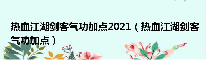 热血江湖剑客气功加点2021(热血江湖剑客气功加点)