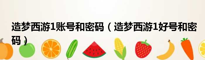 造梦西游1账号和密码(造梦西游1好号和密码)