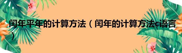 大家好,小东方来为大家解答以上的问题。闰年平年的计算方法,闰年的计算方法c语言这个很多人还不知道,现在让我们一起来看看吧!
