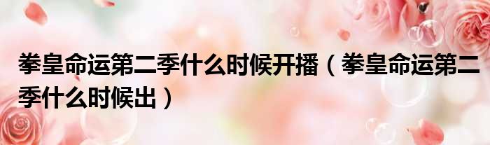 拳皇命运第二季什么时候开播(拳皇命运第二季什么时候出)