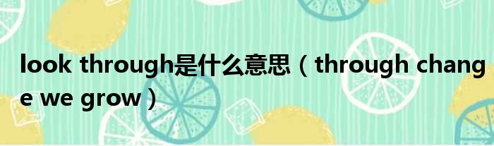 大家好,小东方来为大家解答以上的问题。look through是什么意思,through change we grow这个很多人还不知道,现在让我们一起来看看吧!