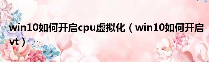 win10如何开启cpu虚拟化(win10如何开启vt)