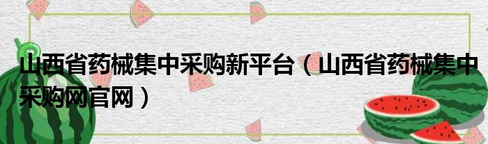 山西省药械集中采购新平台(山西省药械集中采购网官网)