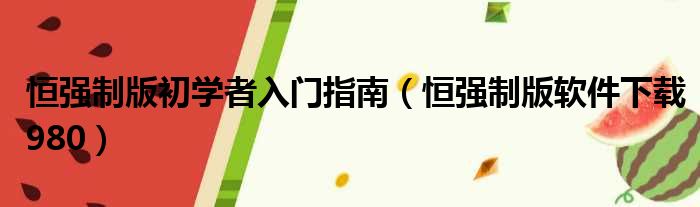 导读 大家好,小东方来为大家解答以上的问题。恒强制版初学者入门指南,恒强制版软件下载980这个很多人还不知道,现在让我们一起来看看吧!1、恒强