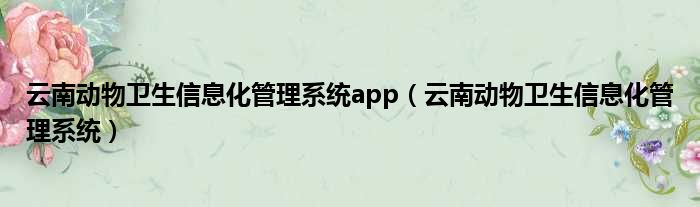 云南动物卫生信息化管理系统app(云南动物卫生信息化管理系统)