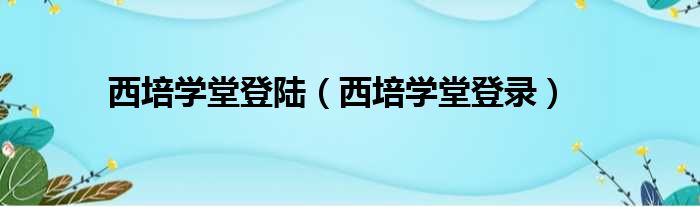 大家好,小东方来为大家解答以上的问题。西培学堂登陆,西培学堂登录这个很多人还不知道,现在让我们一起来看看吧!