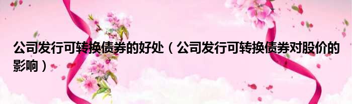 公司发行可转换债券的好处(公司发行可转换债券对股价的影响)