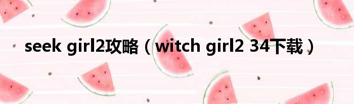 大家好,小东方来为大家解答以上的问题。seek girl2攻略,witch girl2 34下载这个很多人还不知道,现在让我们一起来看看吧!