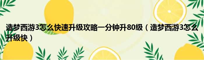 造梦西游3怎么快速升级攻略一分钟升80级(造梦西游3怎么升级快)