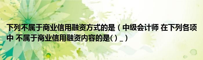 下列不属于商业信用融资方式的是(中级会计师 在下列各项中 不属于商业信用融资内容的是( ) _)