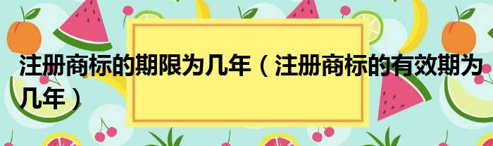 1、注册商标的有效期有多少年?根据我国《商标法》的规定,注册商标的有效期为十年,自核准注册之日起计算。