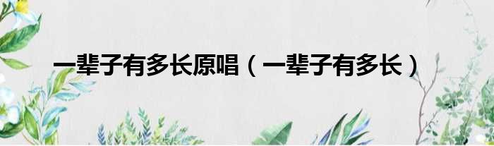 一辈子有多长原唱(一辈子有多长)