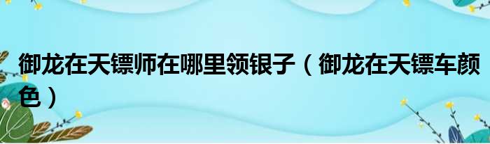 御龙在天镖师在哪里领银子(御龙在天镖车颜色)