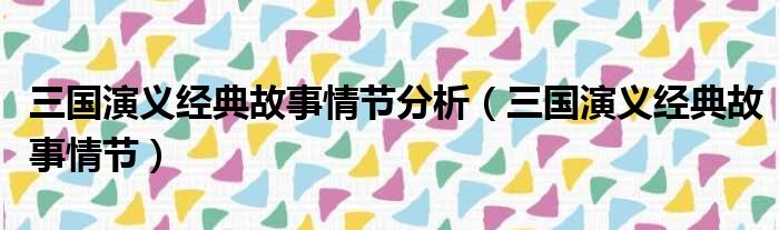 三国演义经典故事情节分析(三国演义经典故事情节)