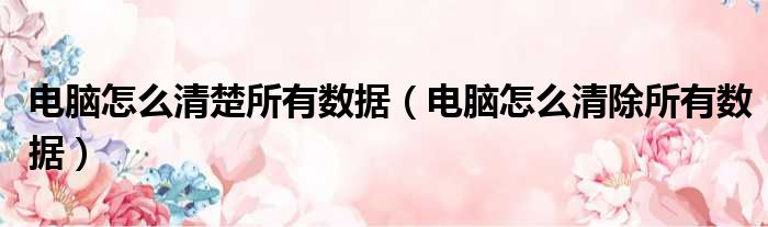 电脑怎么清楚所有数据(电脑怎么清除所有数据)