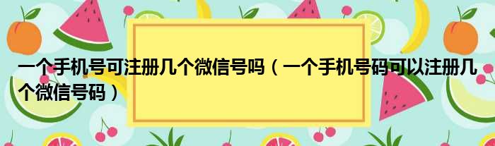 一个手机号可注册几个微信号吗(一个手机号码可以注册几个微信号码)