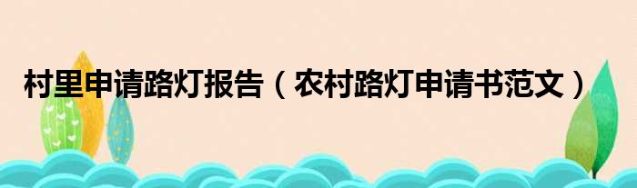 大家好,小东方来为大家解答以上的问题。村里申请路灯报告,农村路灯申请书范文这个很多人还不知道,现在让我们一起来看看吧!