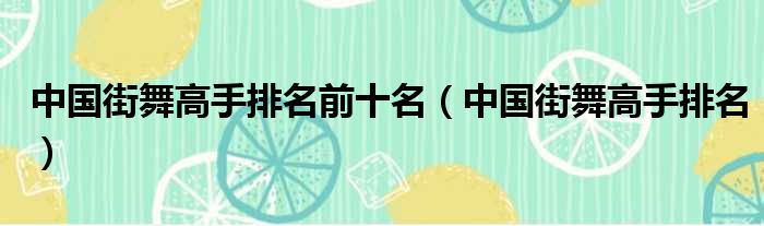 大家好,小东方来为大家解答以上的问题。中国街舞高手排名前十名,中国街舞高手排名这个很多人还不知道,现在让我们一起来看看吧!