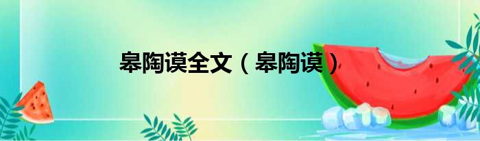 皋陶谟全文(皋陶谟)