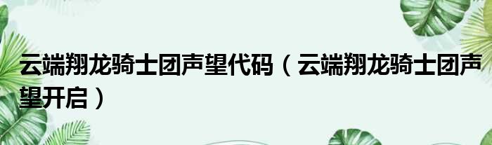 云端翔龙骑士团声望代码(云端翔龙骑士团声望开启)