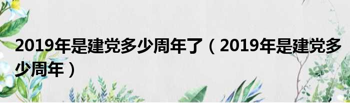 导读 大家好,小东方来为大家解答以上的问题。2019年是建党多少周年了,2019年是建党多少周年这个很多人还不知道,现在让我们一起来看看吧!1、建