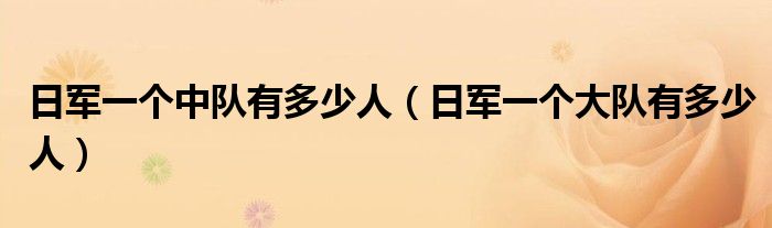 导读 大家好,小东方来为大家解答以上的问题。日军一个中队有多少人,日军一个大队有多少人这个很多人还不知道,现在让我们一起来看看吧!1、二战