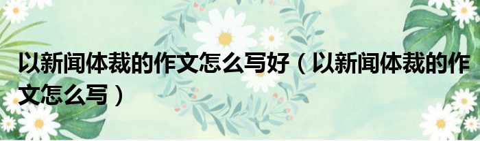 以新闻体裁的作文怎么写好(以新闻体裁的作文怎么写)