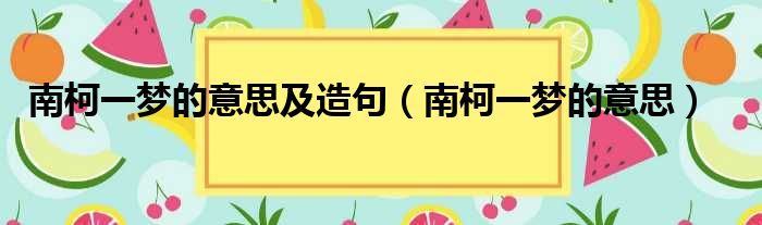 1、南柯一梦,读音nán kē yí mèng,成语。