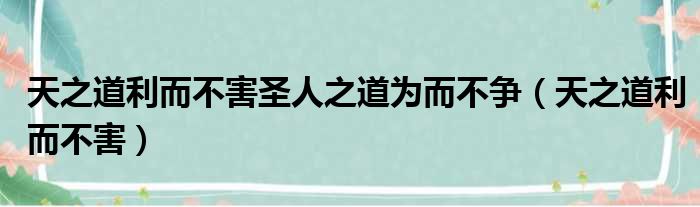 天之道利而不害圣人之道为而不争(天之道利而不害)
