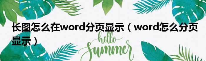 大家好,小东方来为大家解答以上的问题。长图怎么在word分页显示,word怎么分页显示这个很多人还不知道,现在让我们一起来看看吧!