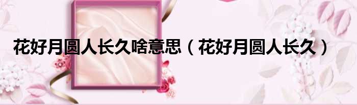 大家好,小东方来为大家解答以上的问题。花好月圆人长久啥意思,花好月圆人长久这个很多人还不知道,现在让我们一起来看看吧!