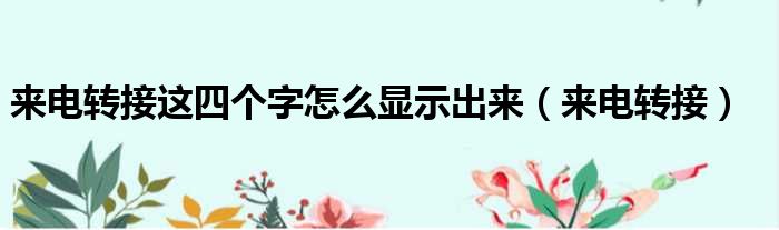 大家好,小东方来为大家解答以上的问题。来电转接这四个字怎么显示出来,来电转接这个很多人还不知道,现在让我们一起来看看吧!