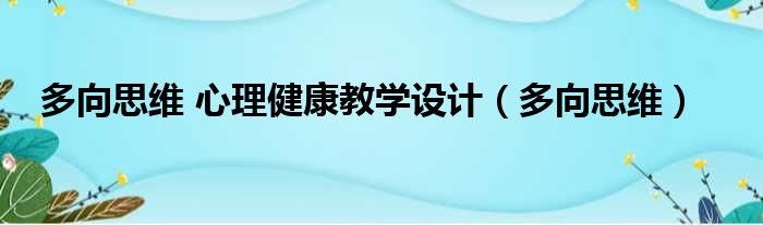 大家好,小东方来为大家解答以上的问题。多向思维 心理健康教学设计,多向思维这个很多人还不知道,现在让我们一起来看看吧!