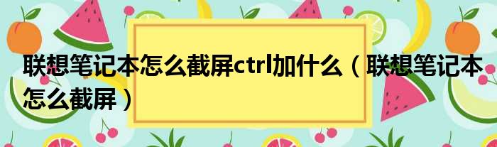 联想笔记本怎么截屏ctrl加什么(联想笔记本怎么截屏)