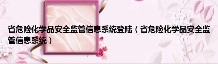 省危险化学品安全监管信息系统登陆(省危险化学品安全监管信息系统)