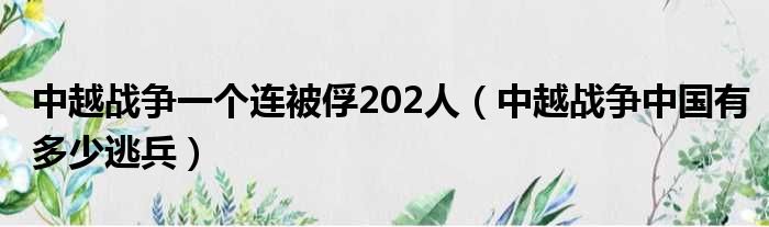 导读 大家好,小东方来为大家解答以上的问题。中越战争一个连被俘202人,中越战争中国有多少逃兵这个很多人还不知道,现在让我们一起来看看吧!1、