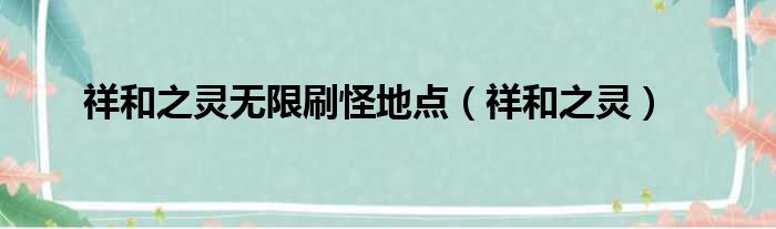 大家好,小爱来为大家解答以上问题。祥和之灵无限刷怪地点,祥和之灵很多人还不知道,现在让我们一起来看看吧!