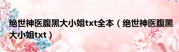 绝世神医腹黑大小姐txt全本(绝世神医腹黑大小姐txt)