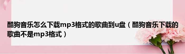酷狗音乐怎么下载mp3格式的歌曲到u盘(酷狗音乐下载的歌曲不是mp3格式)