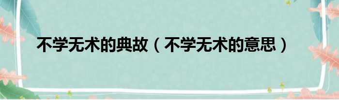 导读 大家好,小东方来为大家解答以上的问题。不学无术的典故,不学无术的意思这个很多人还不知道,现在让我们一起来看看吧!1、不学无术 [ bù
