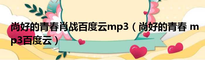 尚好的青春肖战百度云mp3(尚好的青春 mp3百度云)