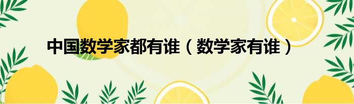 中国数学家都有谁(数学家有谁)