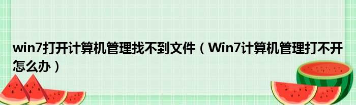 win7打开计算机管理找不到文件(Win7计算机管理打不开怎么办)
