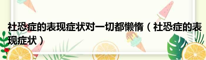 社恐症的表现症状对一切都懒惰(社恐症的表现症状)