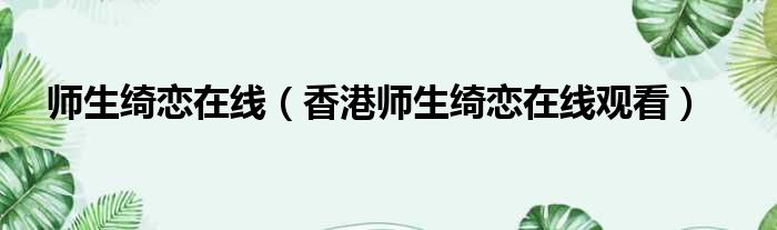 师生绮恋在线(香港师生绮恋在线观看)