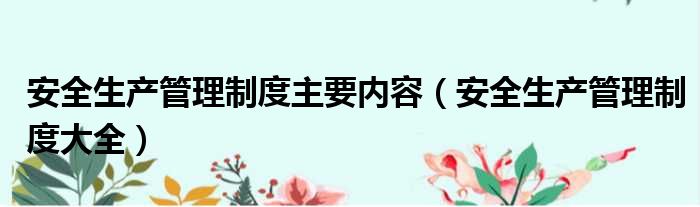 安全生产管理制度主要内容(安全生产管理制度大全)